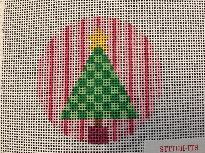 Green Check Tree on Pink Stripes