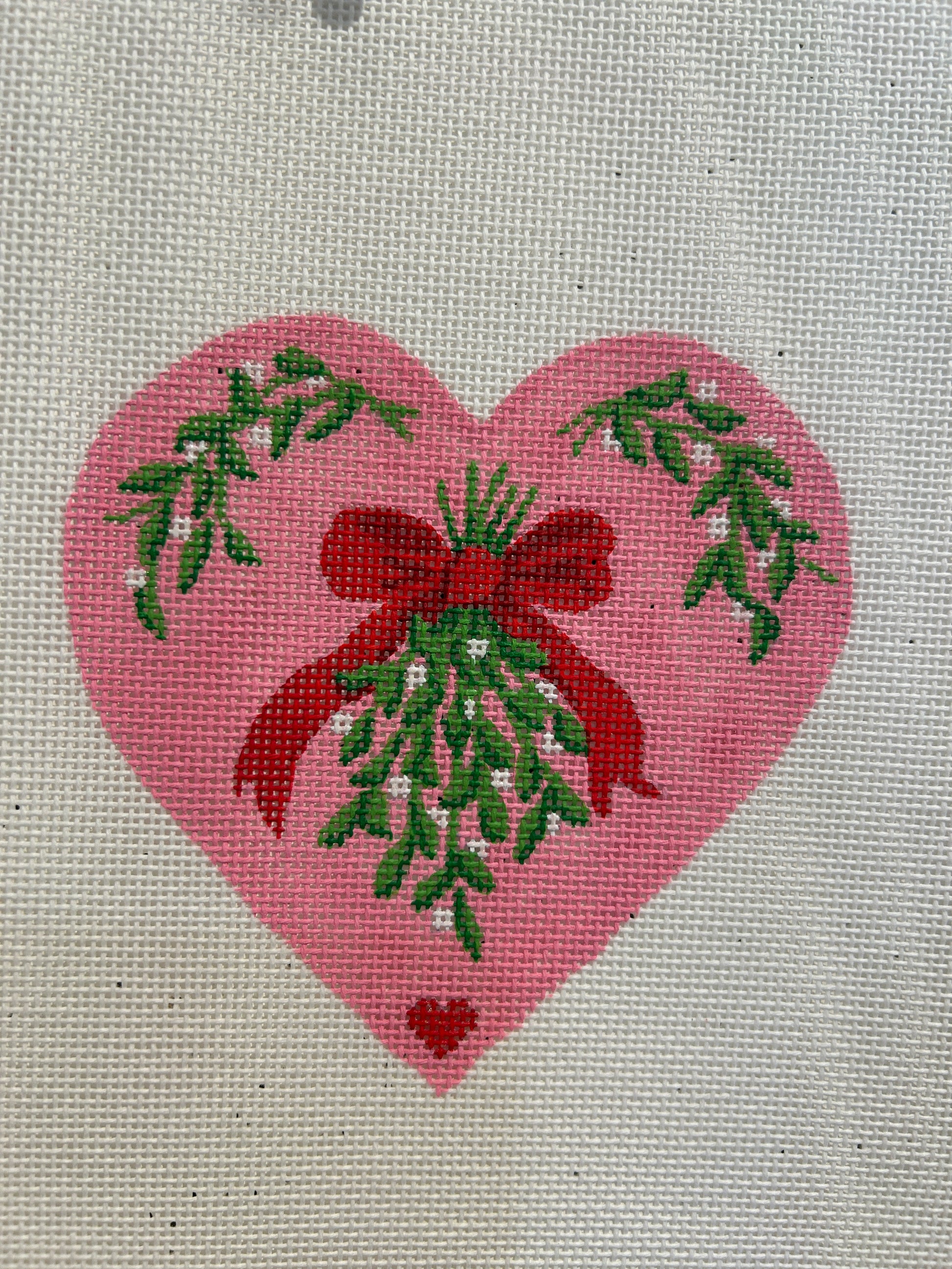 Pink Heart w/ Misteltoe and Red Bow