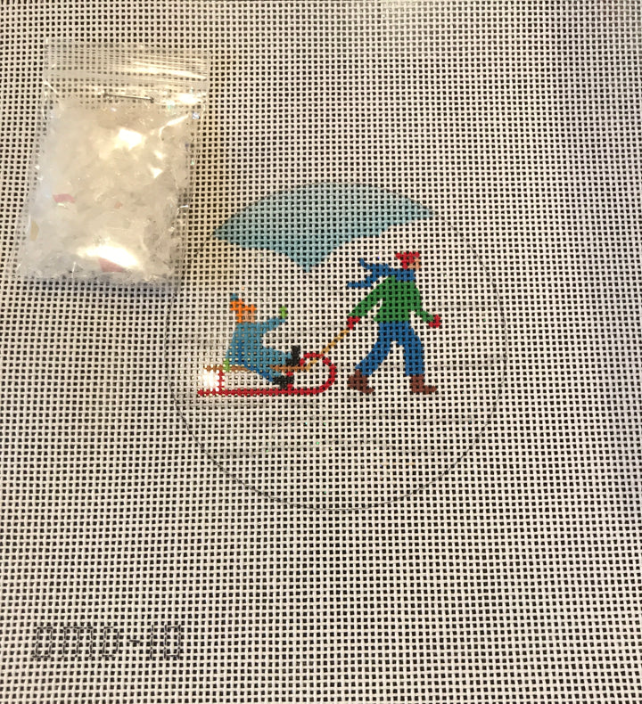 Snow Globe- Child Pulling Toddler on Sled
